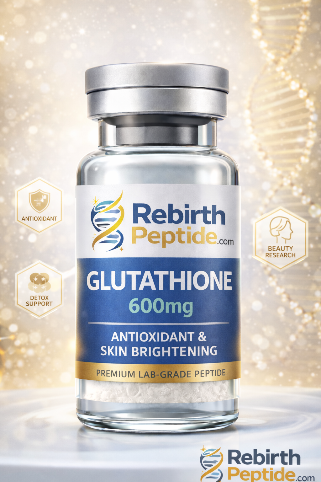 At RebirthPeptide, our Glutathione Peptide 600mg is produced with strict quality standards, ensuring high purity and consistency for research use.