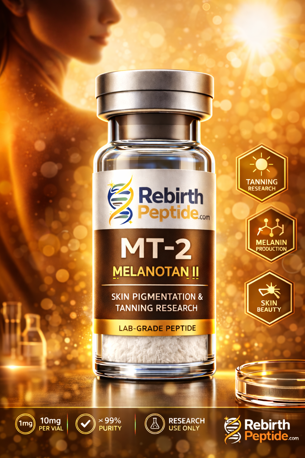 At RebirthPeptide, our MT-2 10mg is produced under strict quality standards to ensure high purity and consistency for research applications.